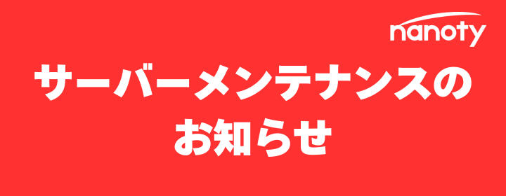 下記の時間帯はメンテナンス画面が表示され、nanotyへアクセスいただくことができませんのでご注意ください。