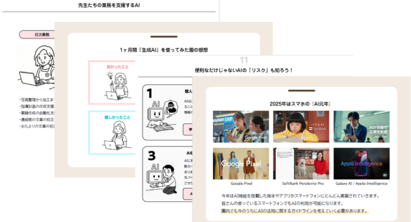 AIは万能ツールではなく、“先生たちの業務をサポートするツール”という視点で、どんな業務に取り入れられるかを解説。